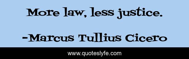 This page presents the quote "More law, less justice.". Author of this quote is Marcus Tullius Cicero. This quote is about justice, law, more,.