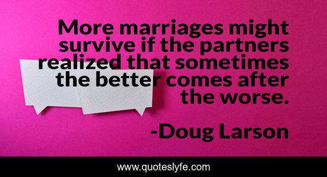 This page presents the quote "More marriages might survive if the partners realized that sometimes the better comes after the worse.". Author of this quote is Doug Larson. This quote is about better, survive, sometimes,.
