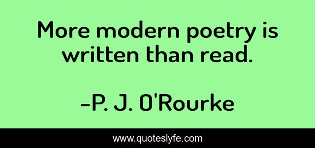 "P. J. O'Rourke Quotes." Quoteslyfe.com, 2025. Fri. 05 Dec. 2025. <https://www.quoteslyfe.com/quote/More-modern-poetry-is-written-than-read-325982>.