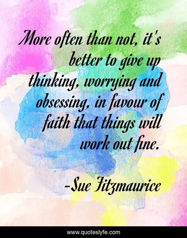 This page presents the quote "More often than not, it's better to give up thinking, worrying and obsessing, in favour of faith that things will work out fine.". Author of this quote is Sue Fitzmaurice. This quote is about faith, thinking, thoughts, inspirational, enthusiasm, worry,.