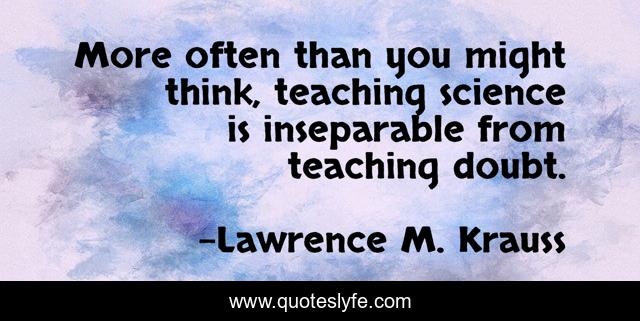This page presents the quote "More often than you might think, teaching science is inseparable from teaching doubt.". Author of this quote is Lawrence M. Krauss. This quote is about science, doubt, learning, teaching,.
