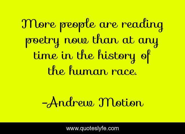 This page presents the quote "More people are reading poetry now than at any time in the history of the human race.". Author of this quote is Andrew Motion. This quote is about reading, time, history,.