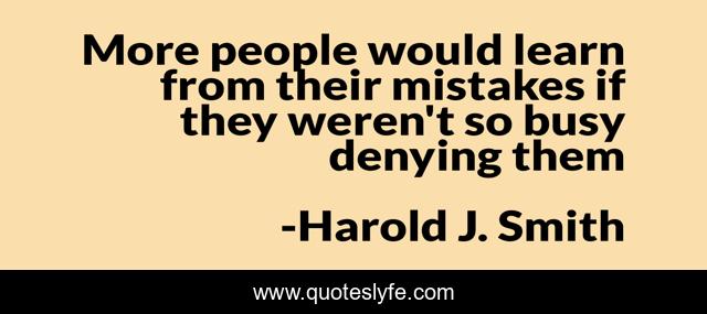 This page presents the quote "More people would learn from their mistakes if they weren't so busy denying them". Author of this quote is Harold J. Smith. This quote is about experience, truth, wisdom,.