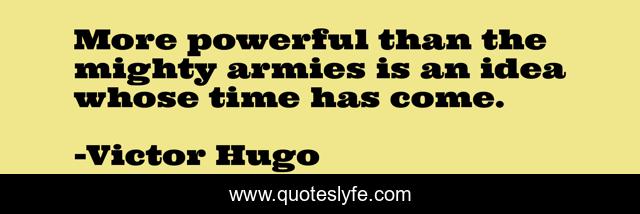 This page presents the quote "More powerful than the mighty armies is an idea whose time has come.". Author of this quote is Victor Hugo. This quote is about philosophy, idea, power,.