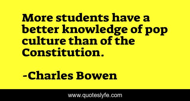 This page presents the quote "More students have a better knowledge of pop culture than of the Constitution.". Author of this quote is Charles Bowen. This quote is about culture, constitution,.
