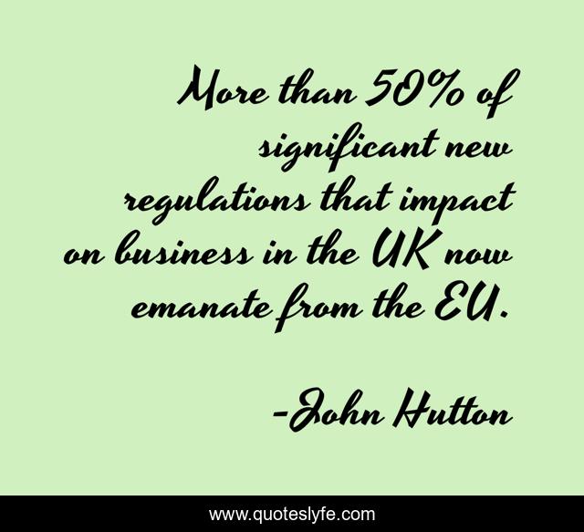 This page presents the quote "More than 50% of significant new regulations that impact on business in the UK now emanate from the EU.". Author of this quote is John Hutton. This quote is about impact, new, now,.
