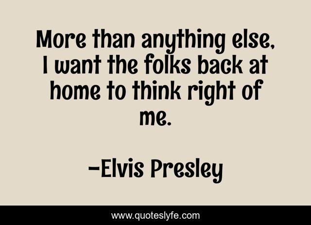 This page presents the quote "More than anything else, I want the folks back at home to think right of me.". Author of this quote is Elvis Presley. This quote is about me, think,.