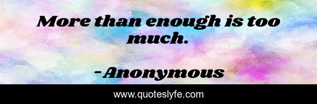 This page presents the quote "More than enough is too much.". Author of this quote is Anonymous. .