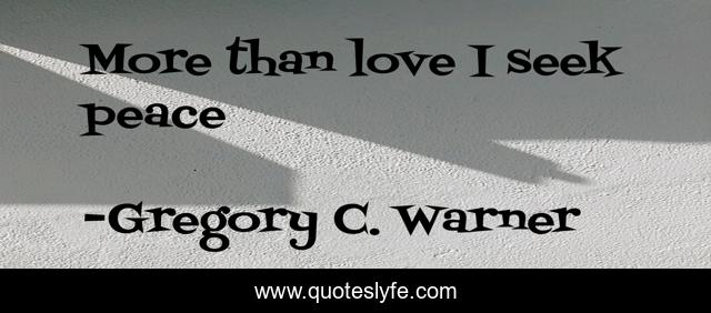 This page presents the quote "More than love I seek peace". Author of this quote is Gregory C. Warner. This quote is about peace-of-mind, peacefulness, peace, love, affection,.