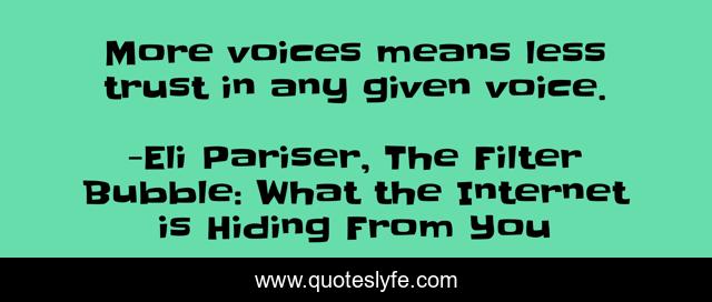 "Eli Pariser, The Filter Bubble: What the Internet is Hiding From You Quotes." Quoteslyfe.com, 2025. Fri. 05 Dec. 2025. <https://www.quoteslyfe.com/quote/More-voices-means-less-trust-in-any-233623>.
