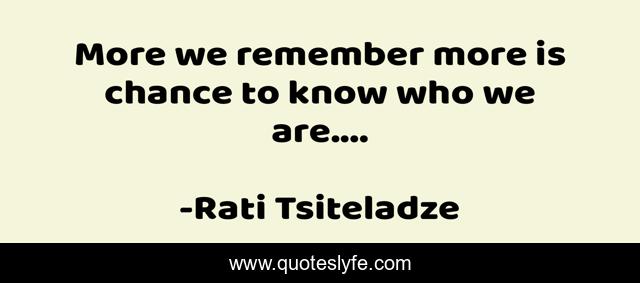 This page presents the quote "More we remember more is chance to know who we are....". Author of this quote is Rati Tsiteladze. This quote is about remembering, memories, who-we-are,.
