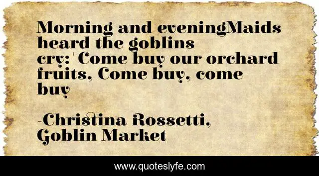 "Christina Rossetti, Goblin Market Quotes." Quoteslyfe.com, 2025. Fri. 05 Dec. 2025. <https://www.quoteslyfe.com/quote/Morning-and-eveningMaids-heard-the-goblins-cry-82194>.