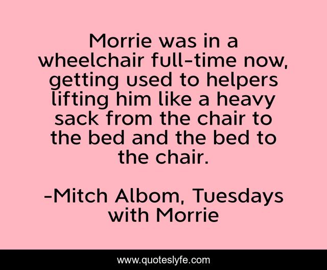 "Mitch Albom, Tuesdays with Morrie Quotes." Quoteslyfe.com, 2025. Fri. 05 Dec. 2025. <https://www.quoteslyfe.com/quote/Morrie-was-in-a-wheelchair-full-time-209239>.