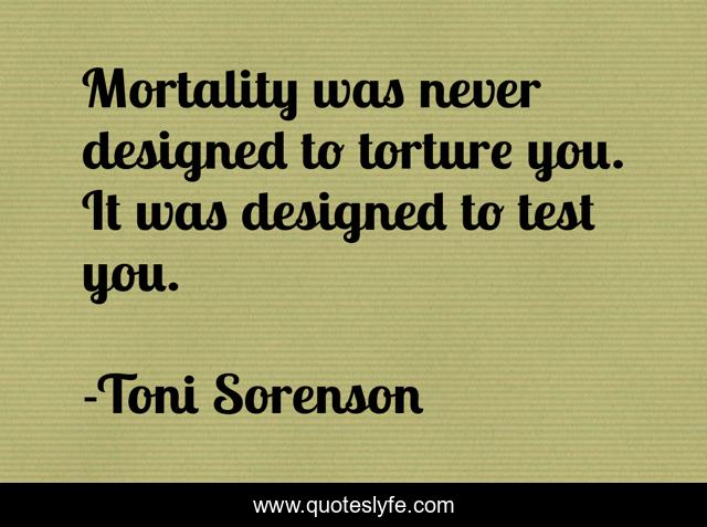 This page presents the quote "Mortality was never designed to torture you. It was designed to test you.". Author of this quote is Toni Sorenson. This quote is about trials, life, testing, mortality, inspiration,.