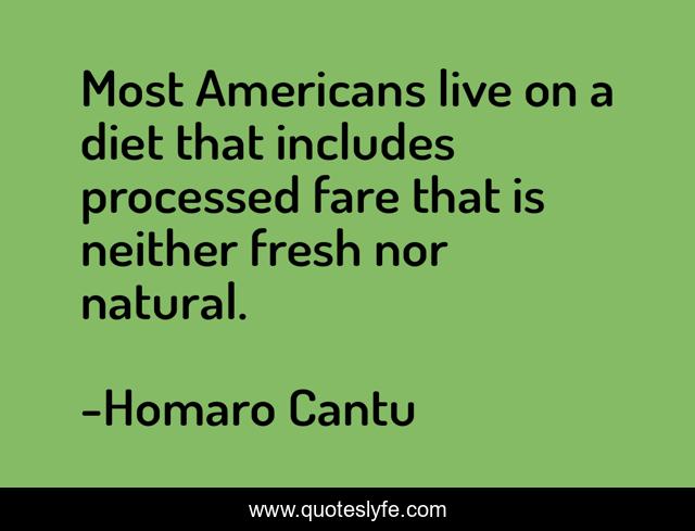 This page presents the quote "Most Americans live on a diet that includes processed fare that is neither fresh nor natural.". Author of this quote is Homaro Cantu. This quote is about fresh, live, natural,.