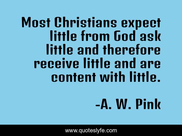 This page presents the quote "Most Christians expect little from God ask little and therefore receive little and are content with little.". Author of this quote is A. W. Pink. .