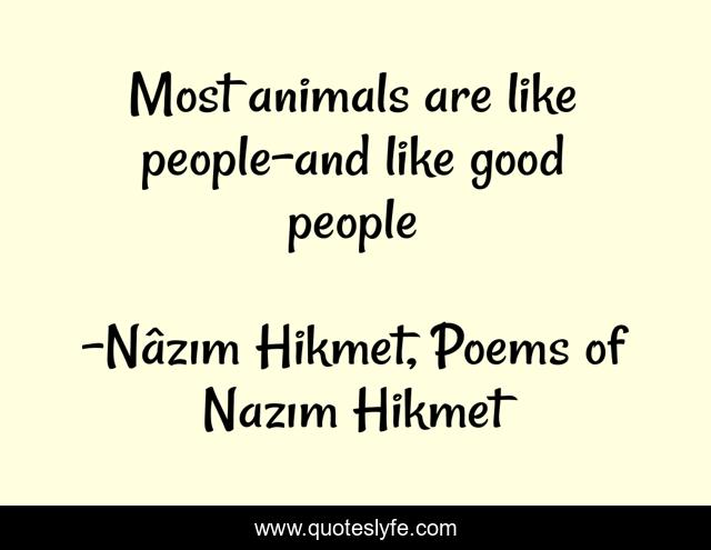 "Nâzım Hikmet, Poems of Nazım Hikmet Quotes." Quoteslyfe.com, 2025. Fri. 05 Dec. 2025. <https://www.quoteslyfe.com/quote/Most-animals-are-like-people-and-like-51515>.