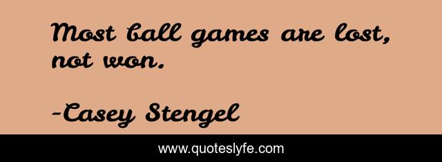 This page presents the quote "Most ball games are lost, not won.". Author of this quote is Casey Stengel. This quote is about ball, games, lost,.