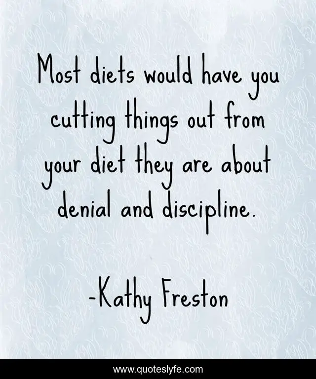 This page presents the quote "Most diets would have you cutting things out from your diet they are about denial and discipline.". Author of this quote is Kathy Freston. This quote is about discipline, denial,.
