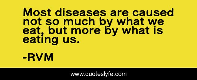 This page presents the quote "Most diseases are caused not so much by what we eat, but more by what is eating us.". Author of this quote is RVM. This quote is about motivation, inspiration,.