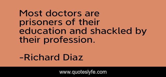 This page presents the quote "Most doctors are prisoners of their education and shackled by their profession.". Author of this quote is Richard Diaz. This quote is about doctors, education, profession, prison,.
