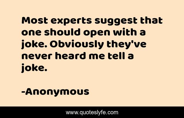 This page presents the quote "Most experts suggest that one should open with a joke. Obviously they've never heard me tell a joke.". Author of this quote is Anonymous. This quote is about introductions, openers,.
