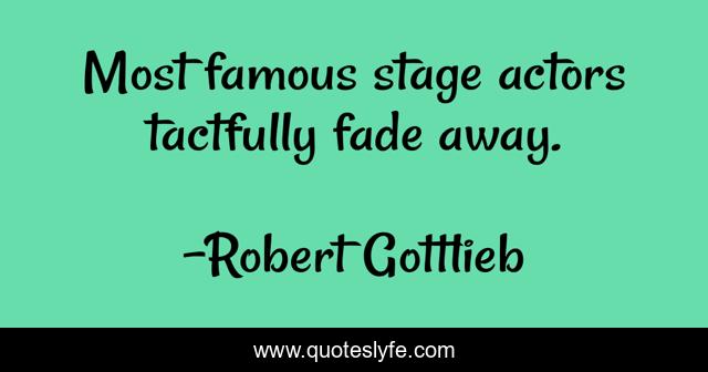 This page presents the quote "Most famous stage actors tactfully fade away.". Author of this quote is Robert Gottlieb. This quote is about away, fade, stage,.