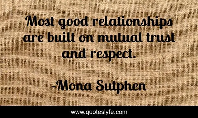 This page presents the quote "Most good relationships are built on mutual trust and respect.". Author of this quote is Mona Sutphen. This quote is about relationships, trust, good,.
