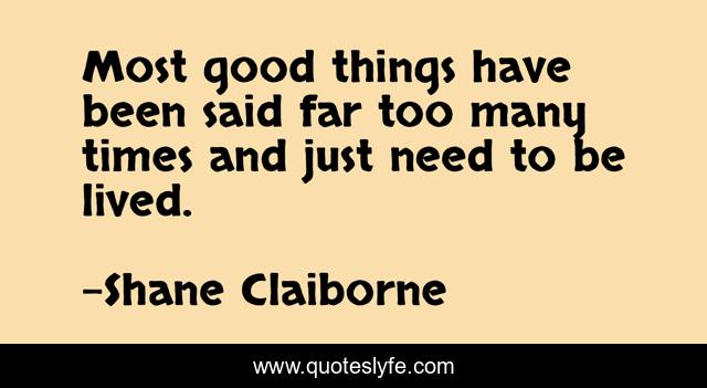 This page presents the quote "Most good things have been said far too many times and just need to be lived.". Author of this quote is Shane Claiborne. This quote is about live, good,.