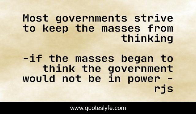 "if the masses began to think the government would not be in power - rjs Quotes." Quoteslyfe.com, 2025. Fri. 05 Dec. 2025. <https://www.quoteslyfe.com/quote/Most-governments-strive-to-keep-the-masses-89010>.