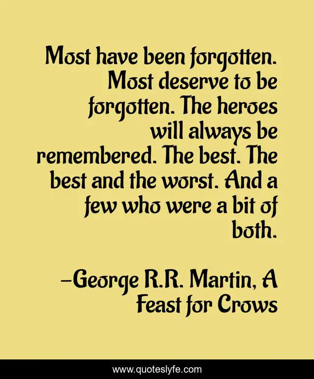 "George R.R. Martin, A Feast for Crows Quotes." Quoteslyfe.com, 2025. Sat. 06 Dec. 2025. <https://www.quoteslyfe.com/quote/Most-have-been-forgotten-Most-deserve-to-132692>.