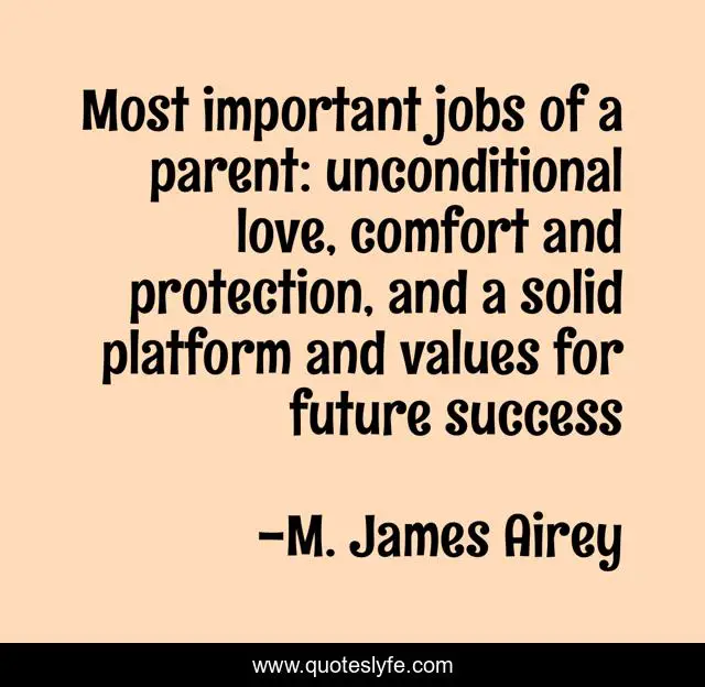 "M. James Airey Quotes." Quoteslyfe.com, 2025. Fri. 05 Dec. 2025. <https://www.quoteslyfe.com/quote/Most-important-jobs-of-a-parent-unconditional-167105>.