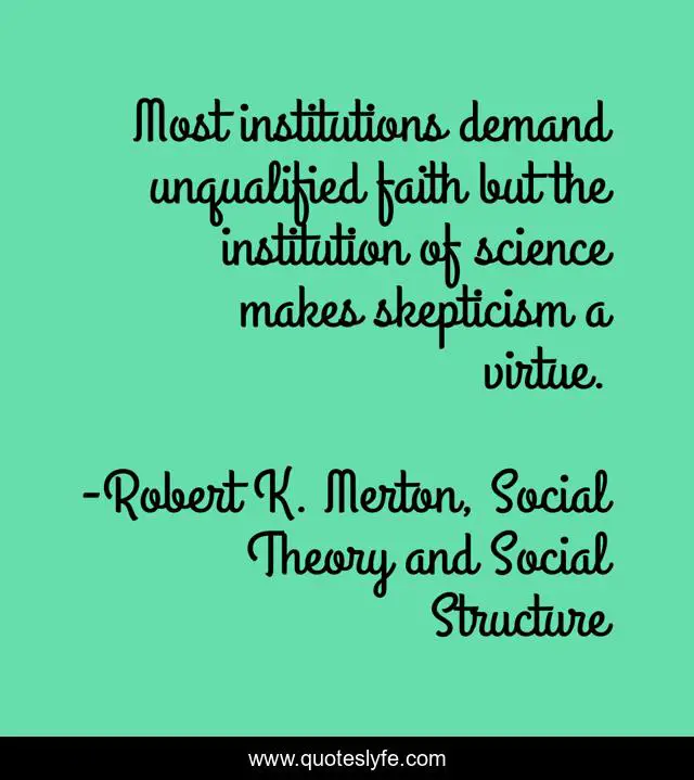 "Robert K. Merton, Social Theory and Social Structure Quotes." Quoteslyfe.com, 2025. Sat. 06 Dec. 2025. <https://www.quoteslyfe.com/quote/Most-institutions-demand-unqualified-faith-but-the-41822>.