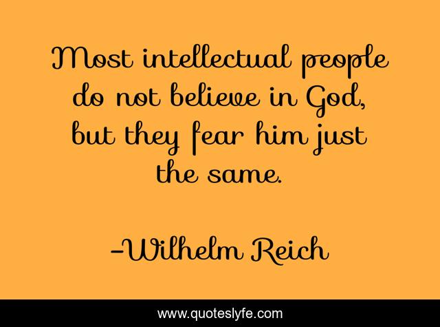 This page presents the quote "Most intellectual people do not believe in God, but they fear him just the same.". Author of this quote is Wilhelm Reich. This quote is about god, believe, people,.