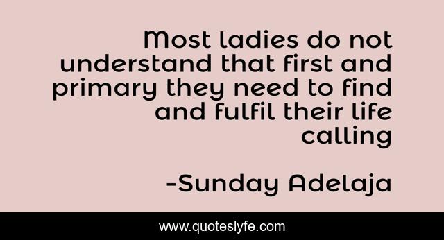 This page presents the quote "Most ladies do not understand that first and primary they need to find and fulfil their life calling". Author of this quote is Sunday Adelaja. This quote is about ladies, focus, life, calling, marriage, purpose, women,.