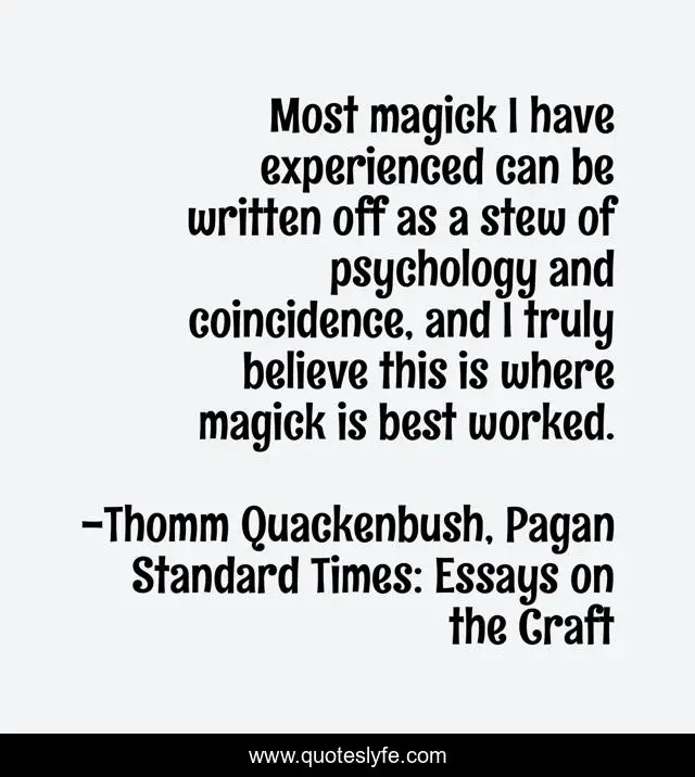 "Thomm Quackenbush, Pagan Standard Times: Essays on the Craft Quotes." Quoteslyfe.com, 2025. Fri. 05 Dec. 2025. <https://www.quoteslyfe.com/quote/Most-magick-I-have-experienced-can-be-103698>.