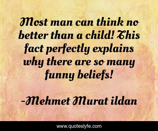 This page presents the quote "Most man can think no better than a child! This fact perfectly explains why there are so many funny beliefs!". Author of this quote is Mehmet Murat ildan. .