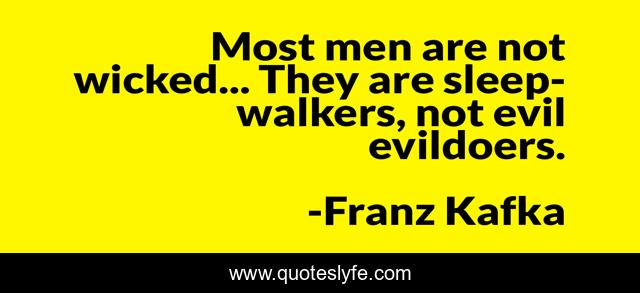 This page presents the quote "Most men are not wicked... They are sleep-walkers, not evil evildoers.". Author of this quote is Franz Kafka. This quote is about philosophical, satire, humour,.