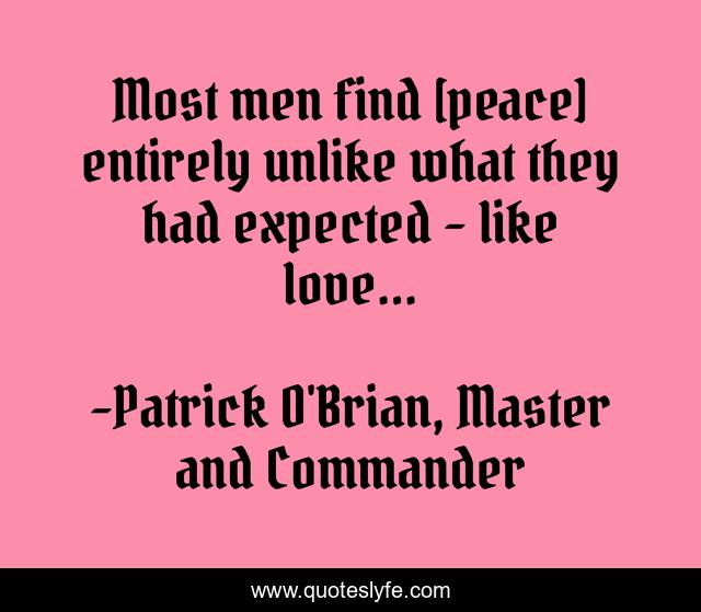 This page presents the quote "Most men find [peace] entirely unlike what they had expected - like love...". Author of this quote is Patrick O'Brian, Master and Commander. This quote is about life, peace, love, expectations, affection,.