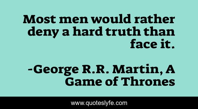 This page presents the quote "Most men would rather deny a hard truth than face it.". Author of this quote is George R.R. Martin, A Game of Thrones. This quote is about denial, honesty, truth,.