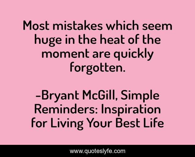 This page presents the quote "Most mistakes which seem huge in the heat of the moment are quickly forgotten.". Author of this quote is Bryant McGill, Simple Reminders: Inspiration for Living Your Best Life. This quote is about forgettable, mistakes, growth,.