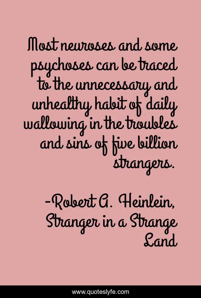 "Robert A. Heinlein, Stranger in a Strange Land Quotes." Quoteslyfe.com, 2025. Sun. 07 Dec. 2025. <https://www.quoteslyfe.com/quote/Most-neuroses-and-some-psychoses-can-be-50180>.