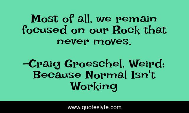 This page presents the quote "Most of all, we remain focused on our Rock that never moves.". Author of this quote is Craig Groeschel, Weird: Because Normal Isn't Working. This quote is about on, all, god, of, we, jesus, most, remain, focused,.