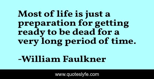 This page presents the quote "Most of life is just a preparation for getting ready to be dead for a very long period of time.". Author of this quote is William Faulkner. This quote is about death, life-and-living,.