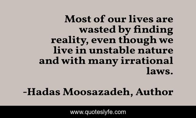 This page presents the quote "Most of our lives are wasted by finding reality, even though we live in unstable nature and with many irrational laws.". Author of this quote is Hadas Moosazadeh, Author. .