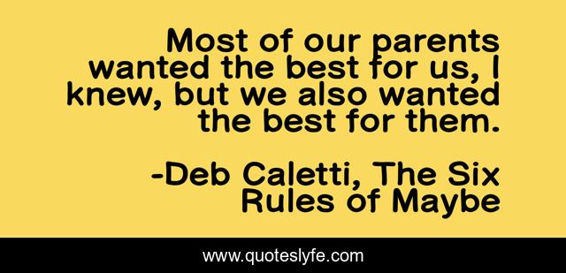 This page presents the quote "Most of our parents wanted the best for us, I knew, but we also wanted the best for them.". Author of this quote is Deb Caletti, The Six Rules of Maybe. .