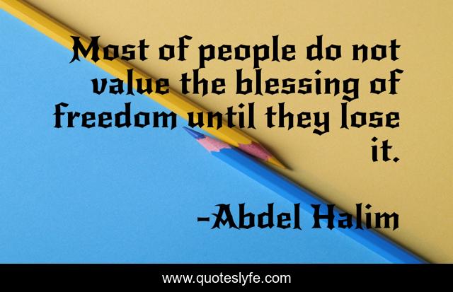 This page presents the quote "Most of people do not value the blessing of freedom until they lose it.". Author of this quote is Abdel Halim. .
