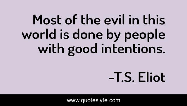 This page presents the quote "Most of the evil in this world is done by people with good intentions.". Author of this quote is T.S. Eliot. This quote is about good-intentions, evil, morality,.