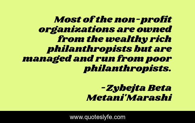 This page presents the quote "Most of the non-profit organizations are owned from the wealthy rich philanthropists but are managed and run from poor philanthropists.". Author of this quote is Zybejta Beta Metani'Marashi. .