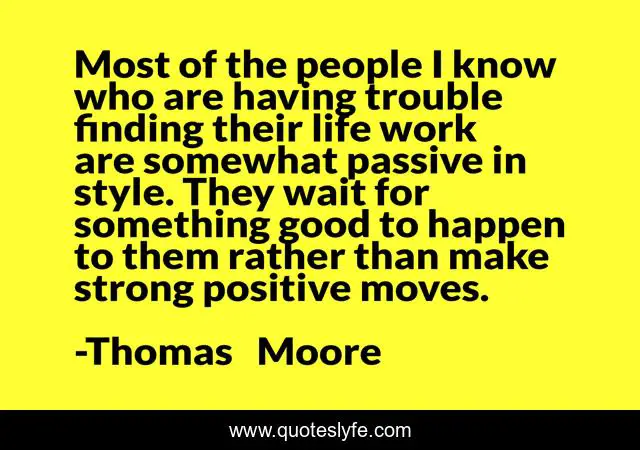 This page presents the quote "Most of the people I know who are having trouble finding their life work are somewhat passive in style. They wait for something good to happen to them rather than make strong positive moves.". Author of this quote is Thomas Moore. .